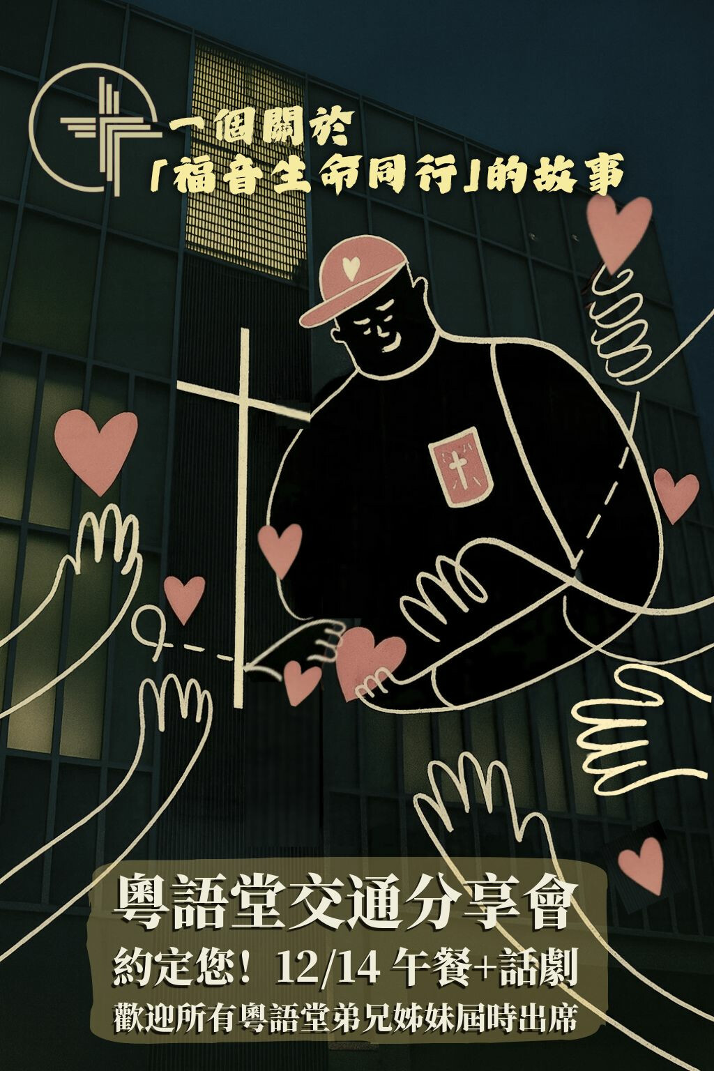 12月14日粵語堂主日崇拜結束後, 歡迎弟兄姊妹一起留下來吃午餐和欣賞一個特別的小話劇:一個關於“福音生命同行”的故事。故事講述一個新朋友如何因著教會的愛、接待、探訪和同行,一步步認識主耶穌,最後成爲祝福別人的人。